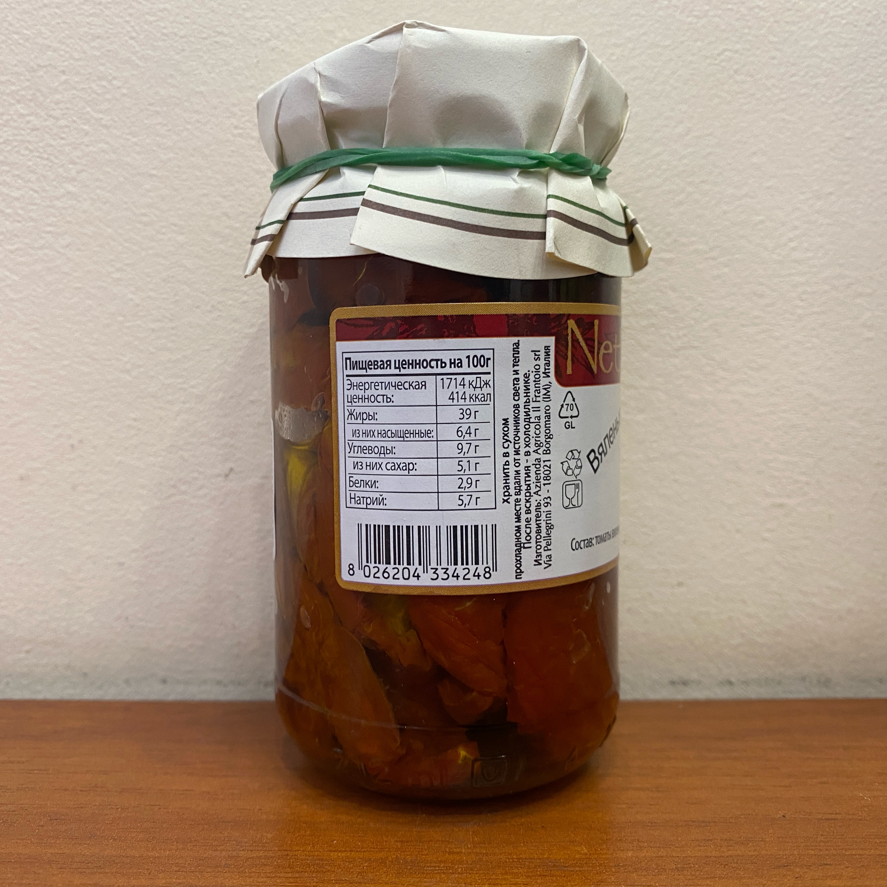 Ингредиенты: томаты вяленые, оливковое масло нерафинированное, уксус винный натуральный, соль морская