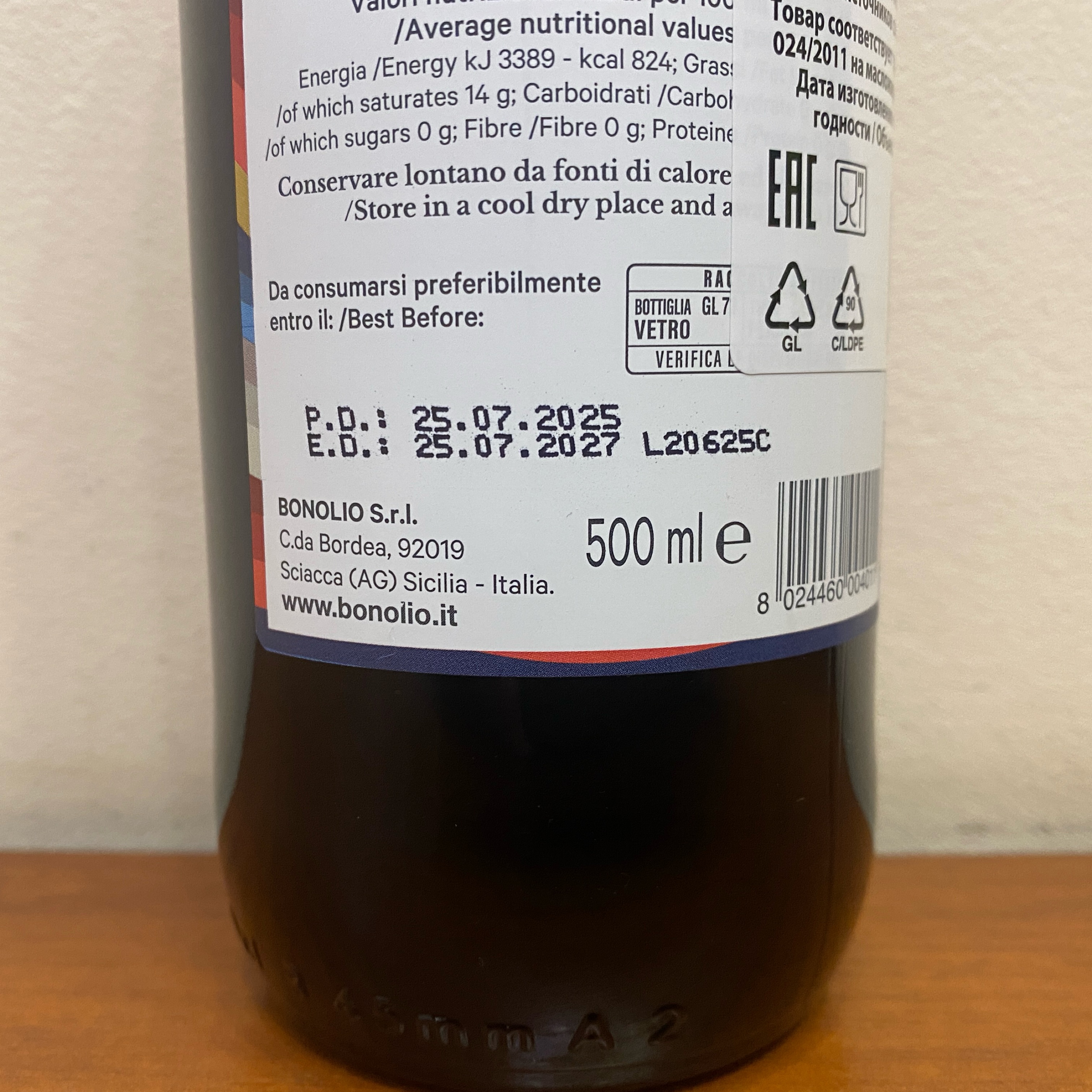 Производство Bonolio расположено в Шакке, в регионе DOP Sicilia "Val di Mazara", то есть на территории сельскохозяйственного назначения, подходящей для выращивания особенно востребованных оливок, из которых компания изготавливает высококачественные масла. Это оливки сортов Biancolilla, Nocellara Del Belice, и Cerasuola. Из них изготавливаются прекрасные и подлинные продукты с аутентичным вкусом для всех ценителей.
