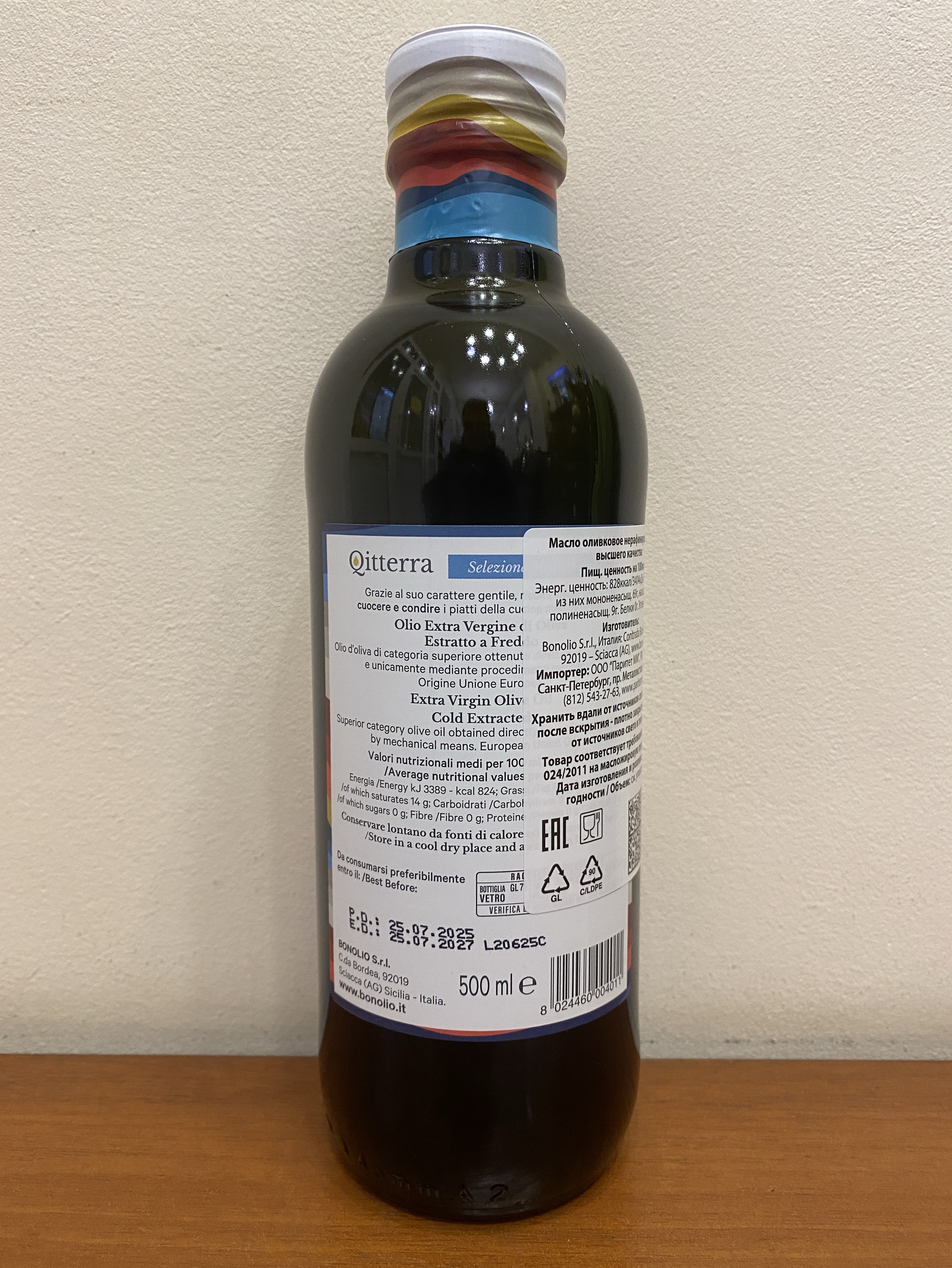 Оливковое масло нерафинированное BONO Extra Virgin QUITTERRA в стеклян. бутылке.
