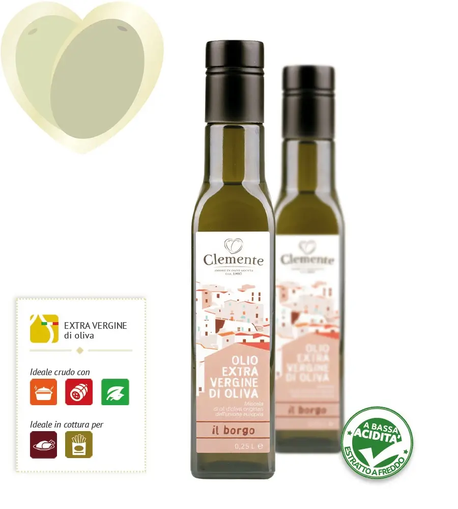 Оливковое масло нерафинированное Premium Class, Clemente il Borgo (деревня)Extra Virgin в стеклянной бутылке 500 мл