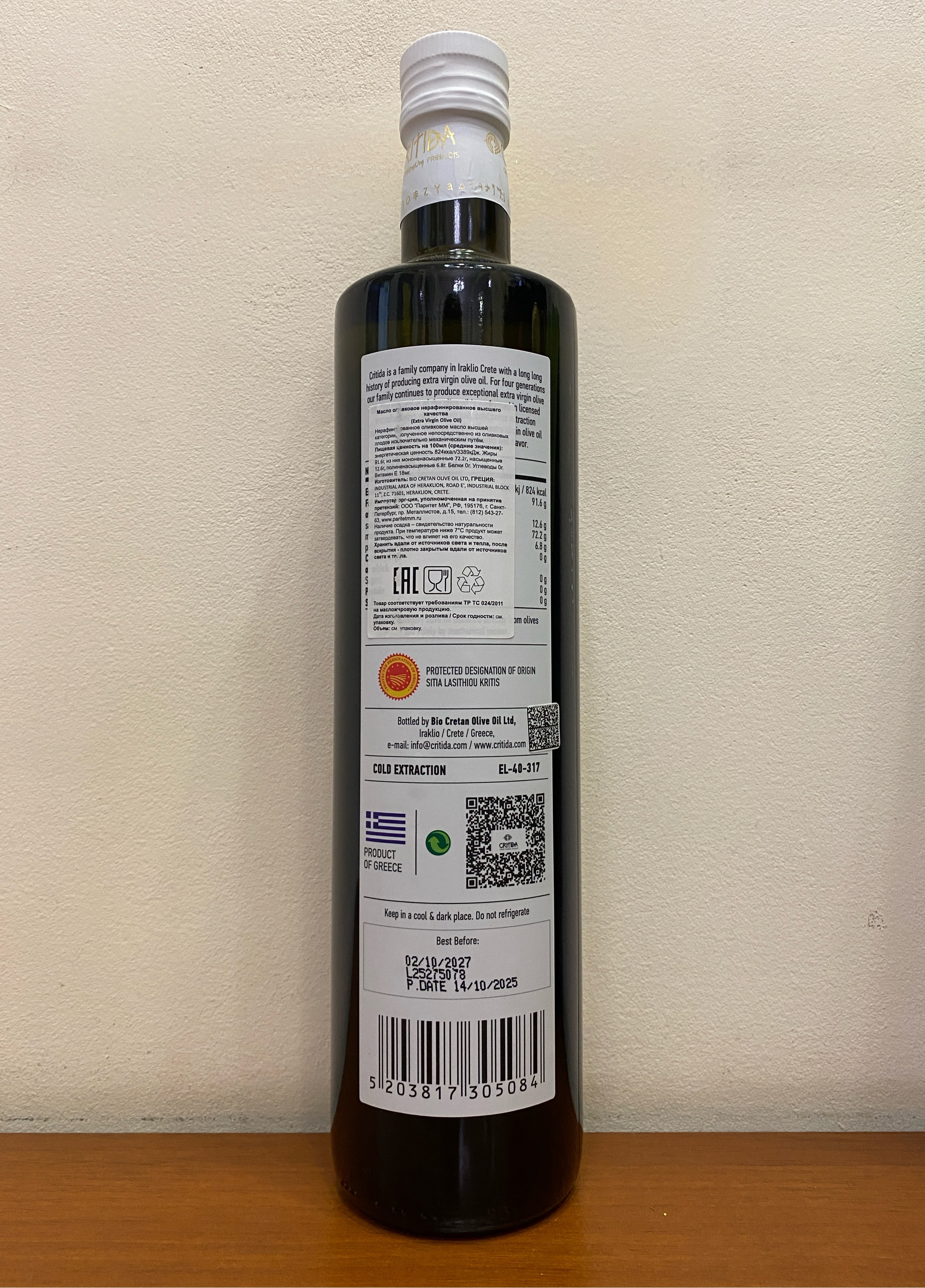 - CRITIDA Bio Cretan Olive Oil - это история с 1912 года, пять поколений производителей ОЛИВКОВОГО МАСЛА ПЕРВОГО ОТЖИМА (EVOO) на острове Крит в Греции