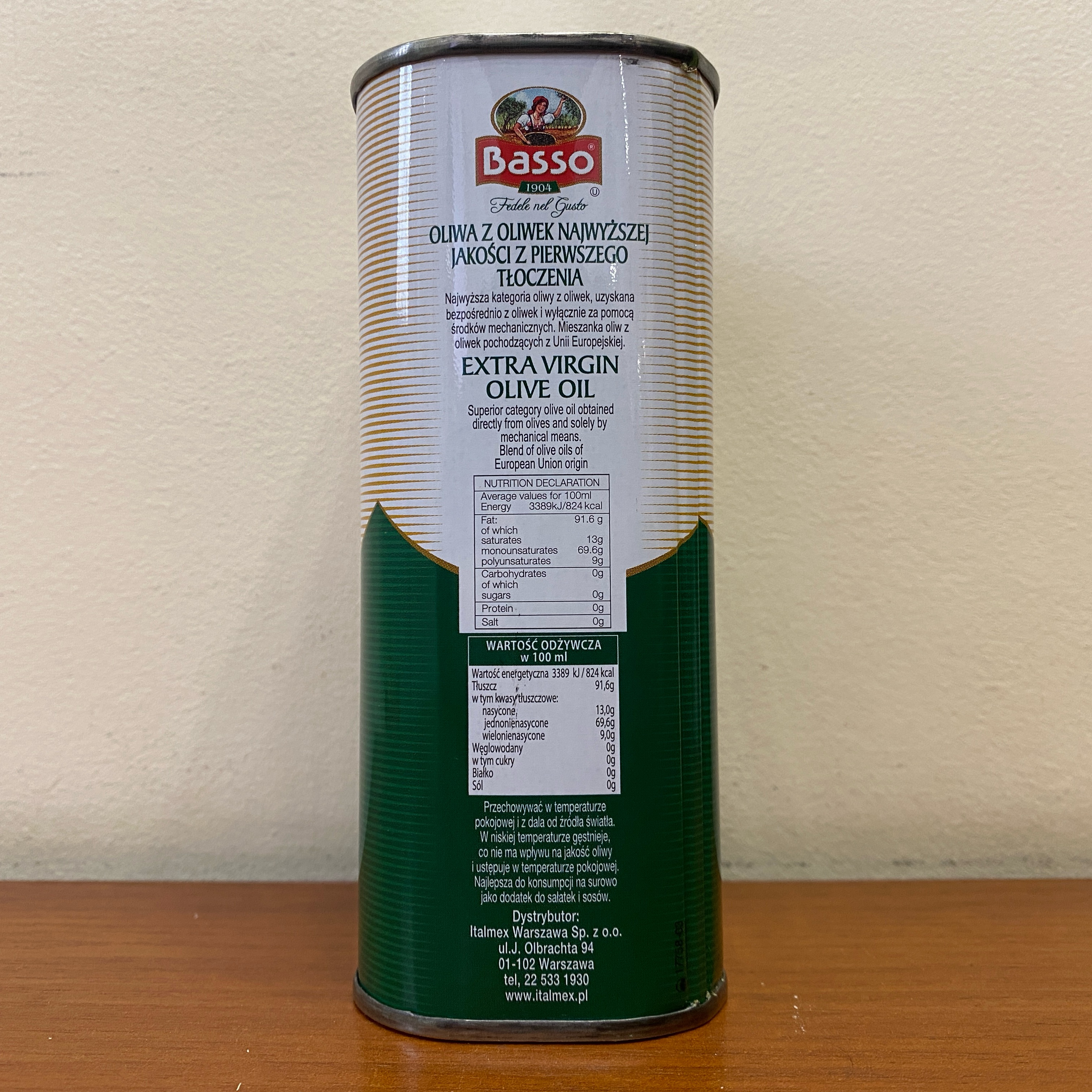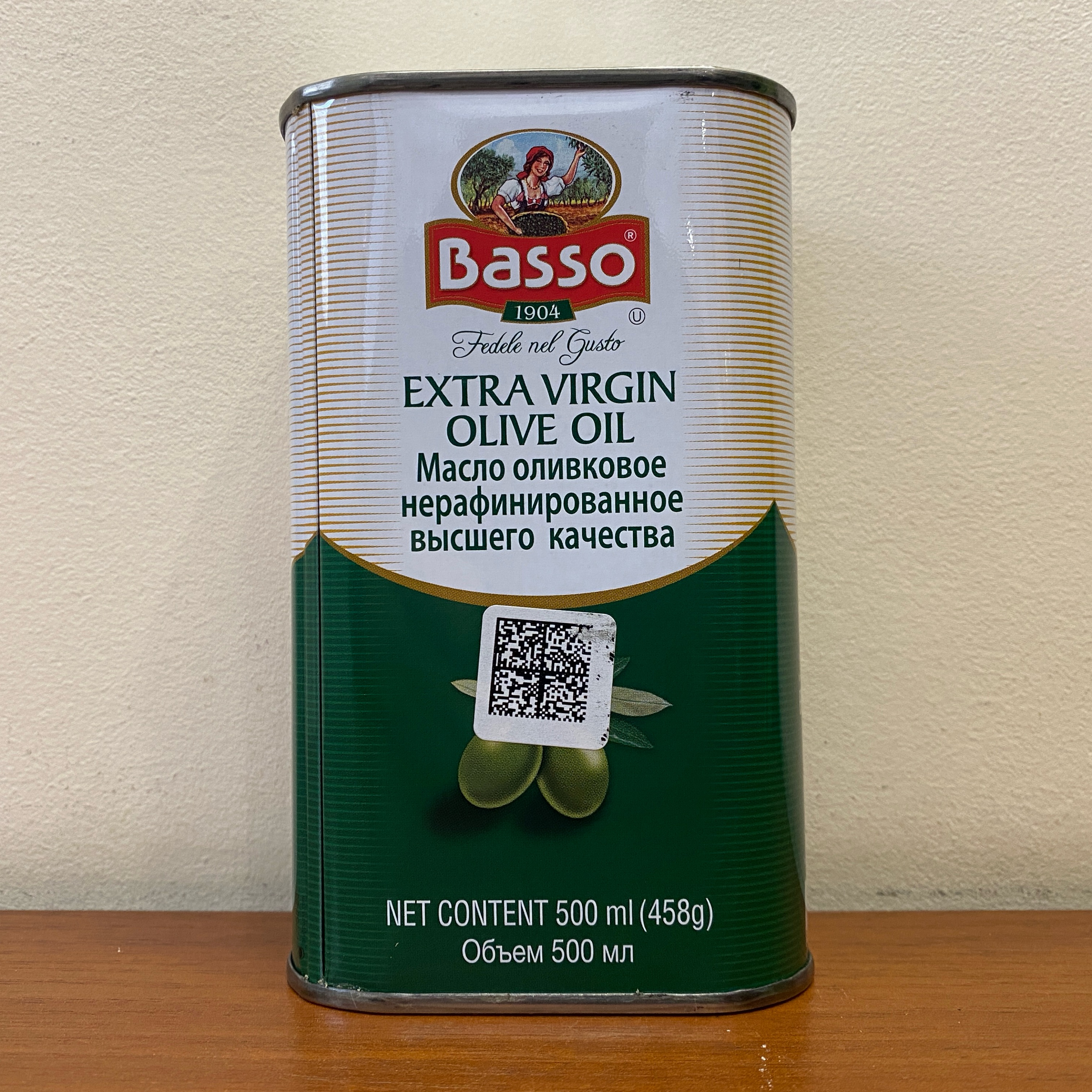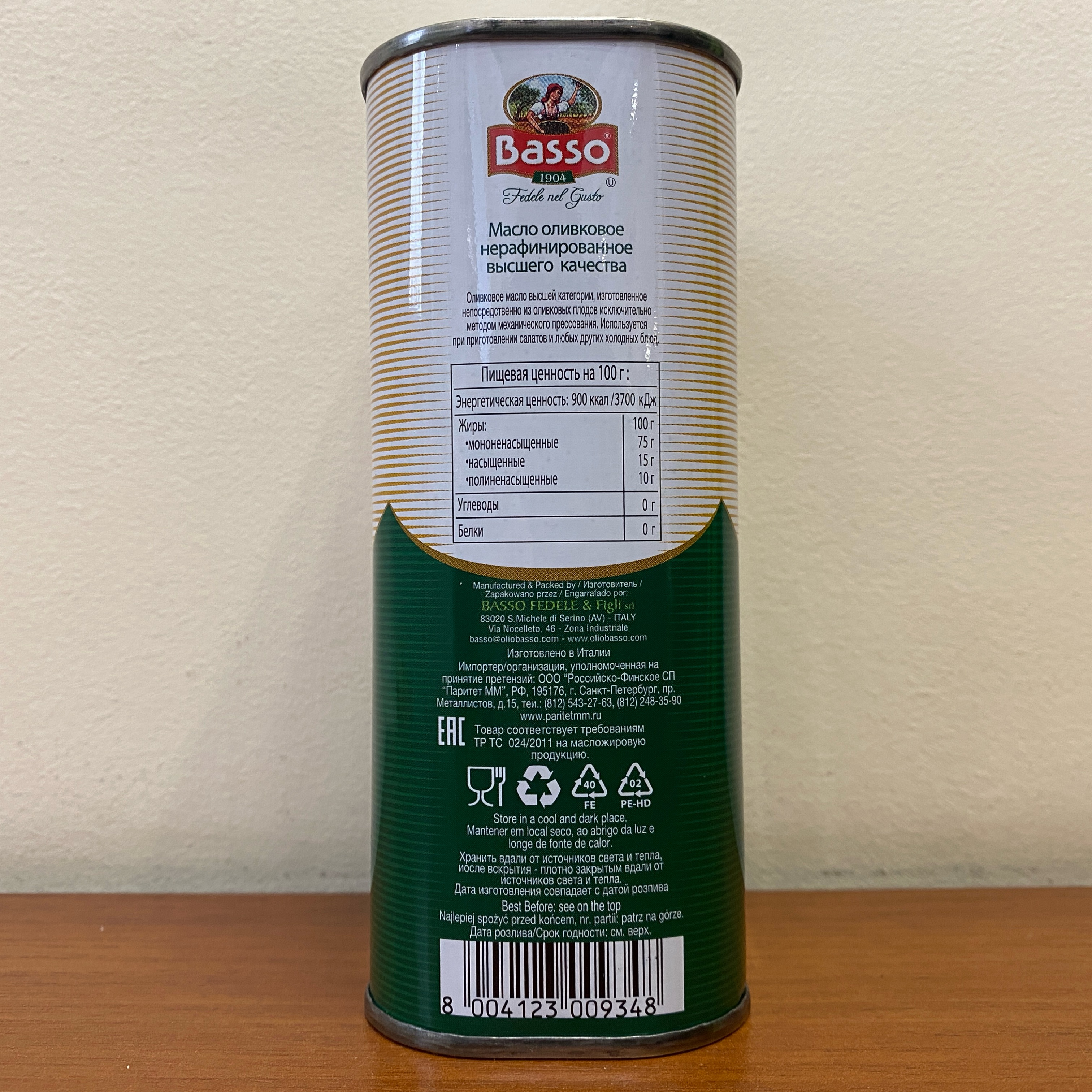 Оливковое масло нерафинированное BASSO Extra Virgin в железной канистре 3 литра.