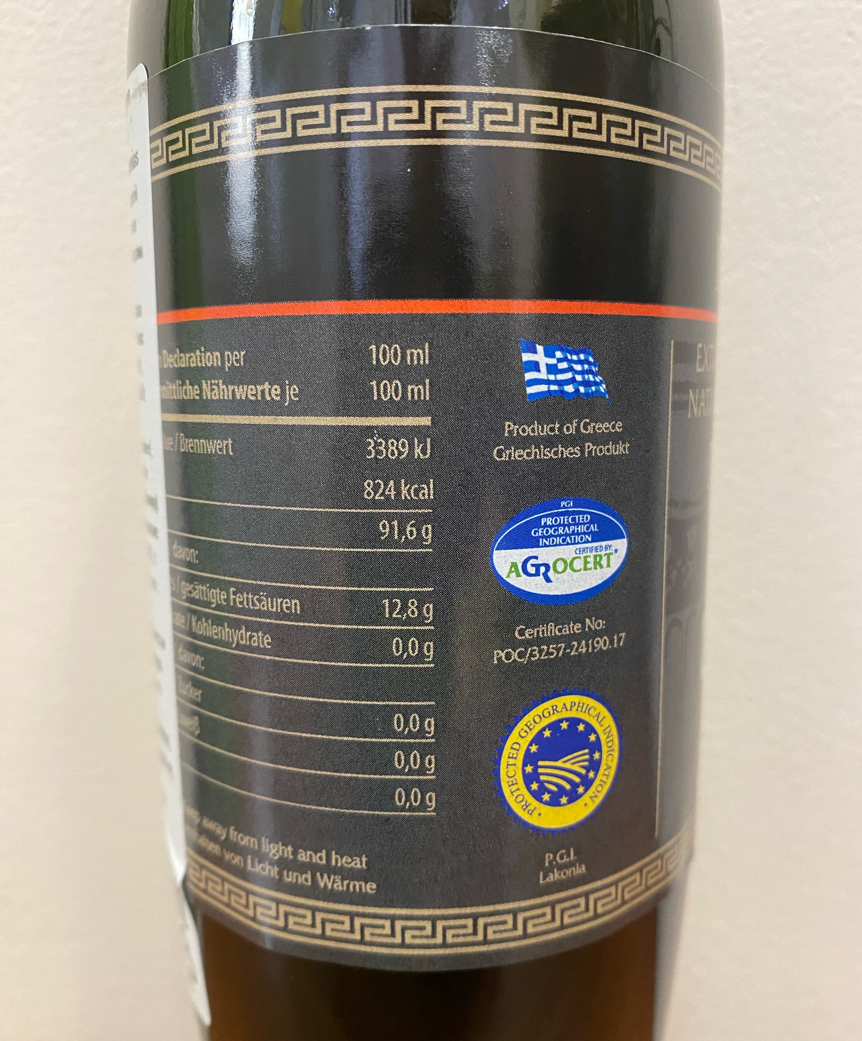 P.G.I. Эта маркировка подтверждает, что масло производится из оливок, выращенных в охраняемой географической области и разлито на месте производства.