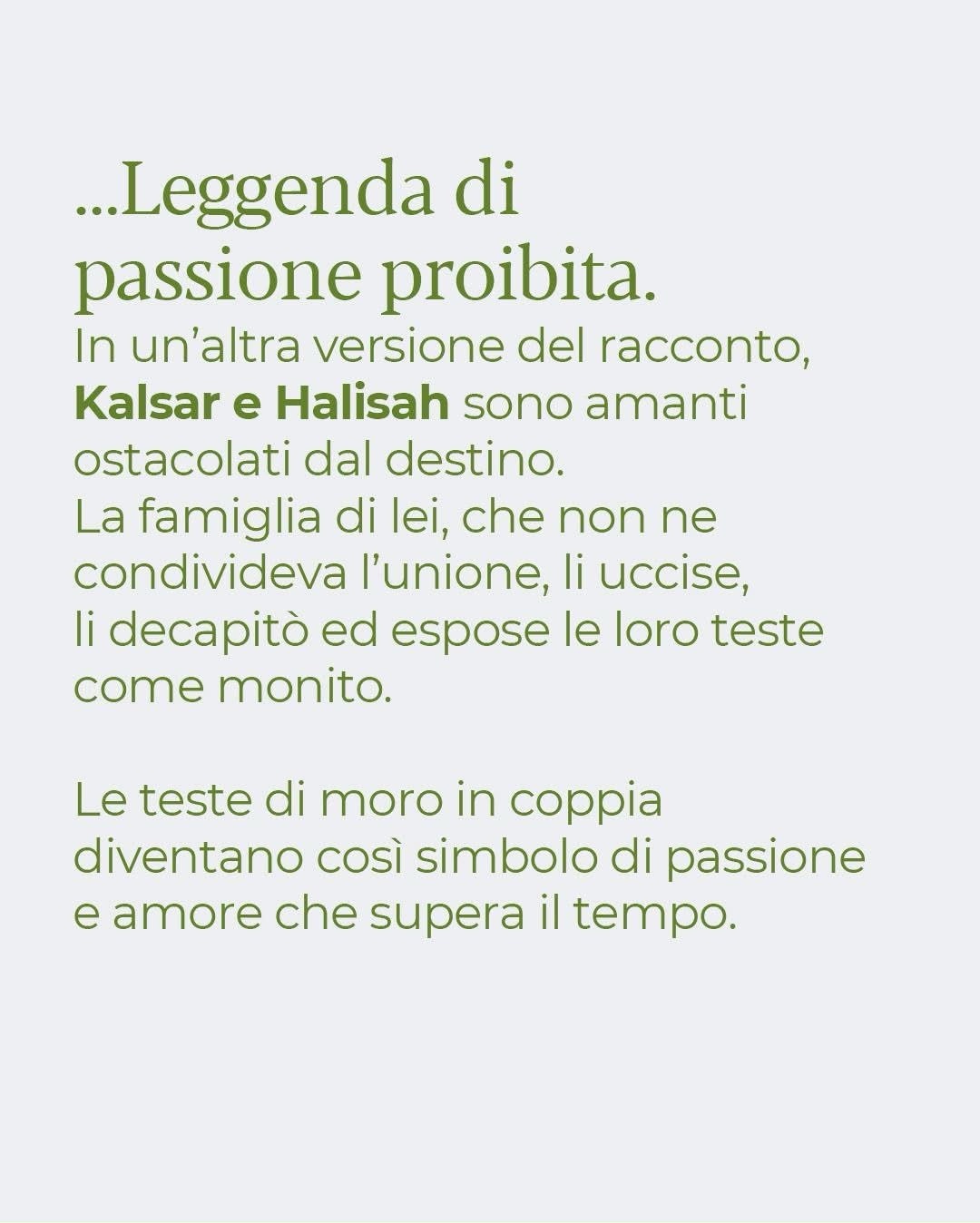 Халиса и Кальсар – персонажи старинной легенды города Палермо, после которых на Сицилии стали распространенными мавританские головы из керамики.