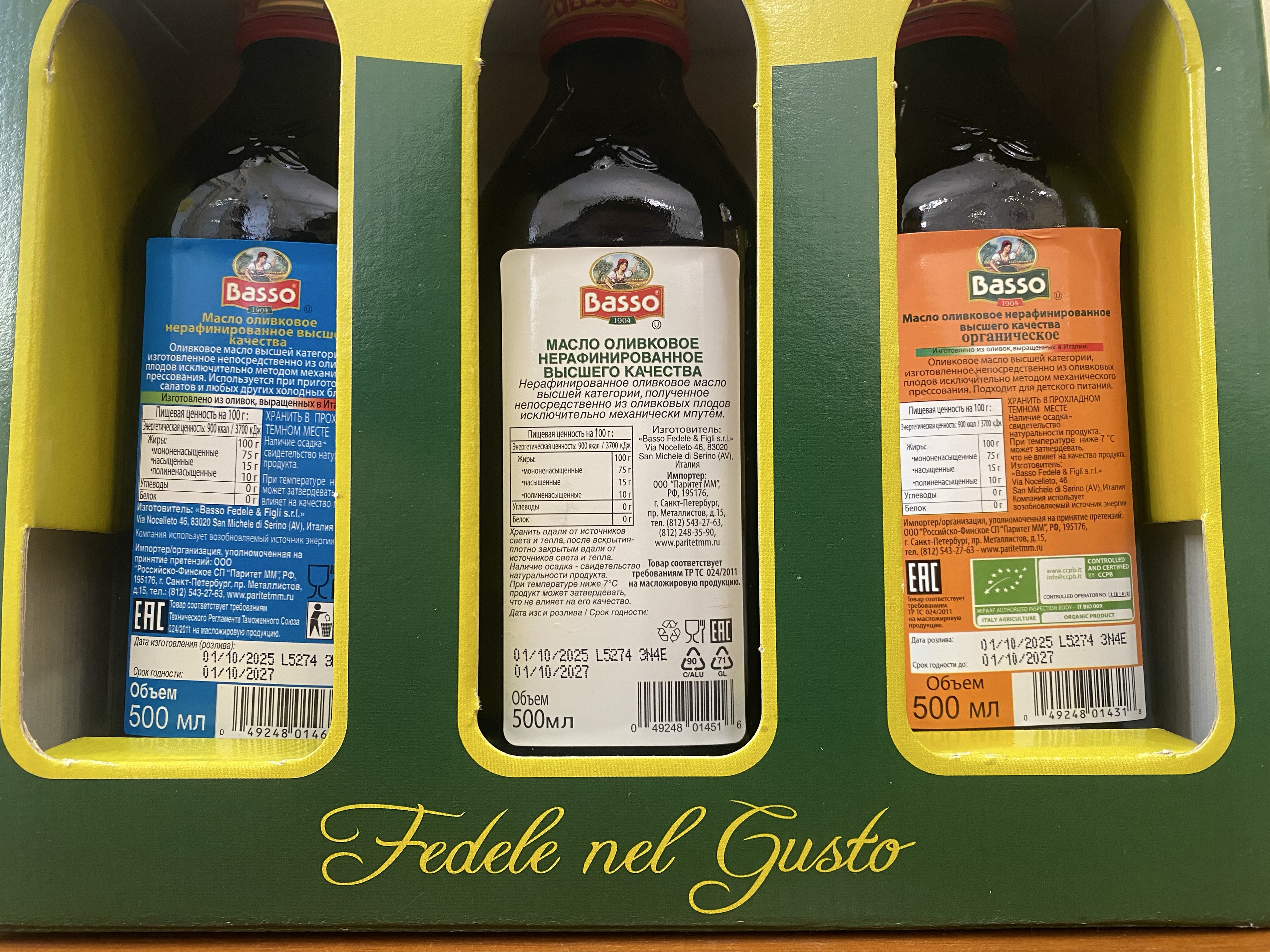 Подарочный набор BASSO в подарочной коробке: 3 вида Оливкового масла Extra Virgin
