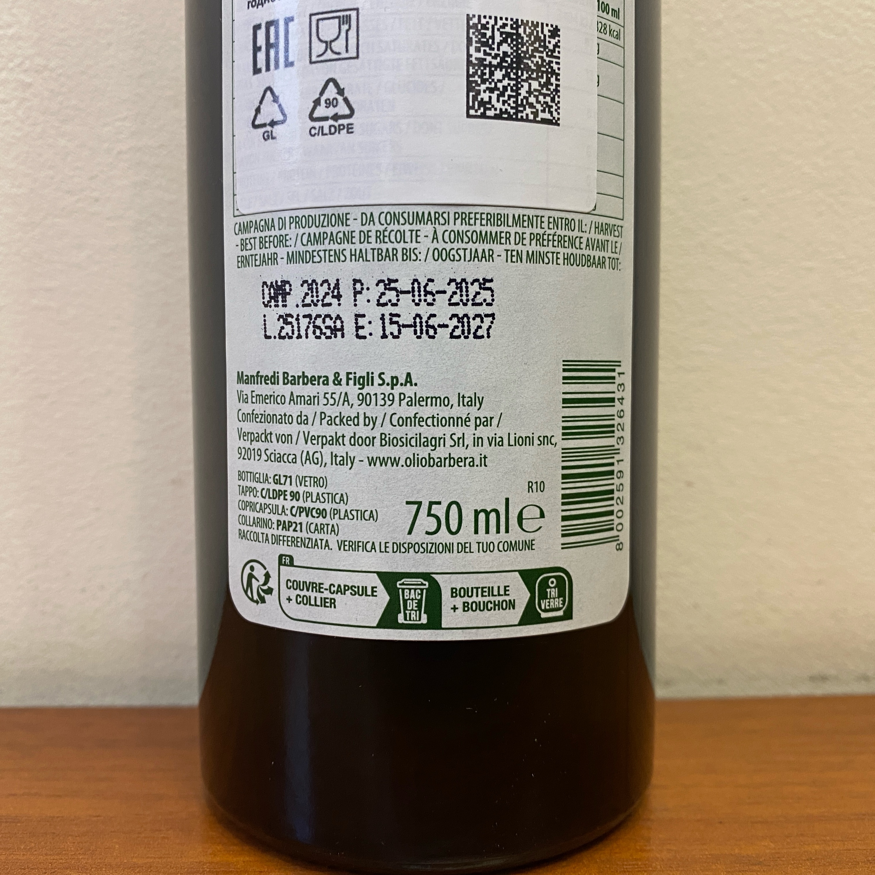 Сегодня компания Manfredi Barbera & Figli SpA является одним из самых продвинутых изготовителей оливкового масла на международной арене, чья превосходная продукция изготавливается и разливается в соответствии с самыми строгими стандартами качества и гигиены. Качество производства гарантируется самыми главными и надежными международными системами сертификации – ISO 9001, ISO22005:2007, BRC (Консорциум ритейлеров Британии), IFS (международный стандарт качества и безопасности продуктов питания), а также консультантами по производству кошерной продукции.