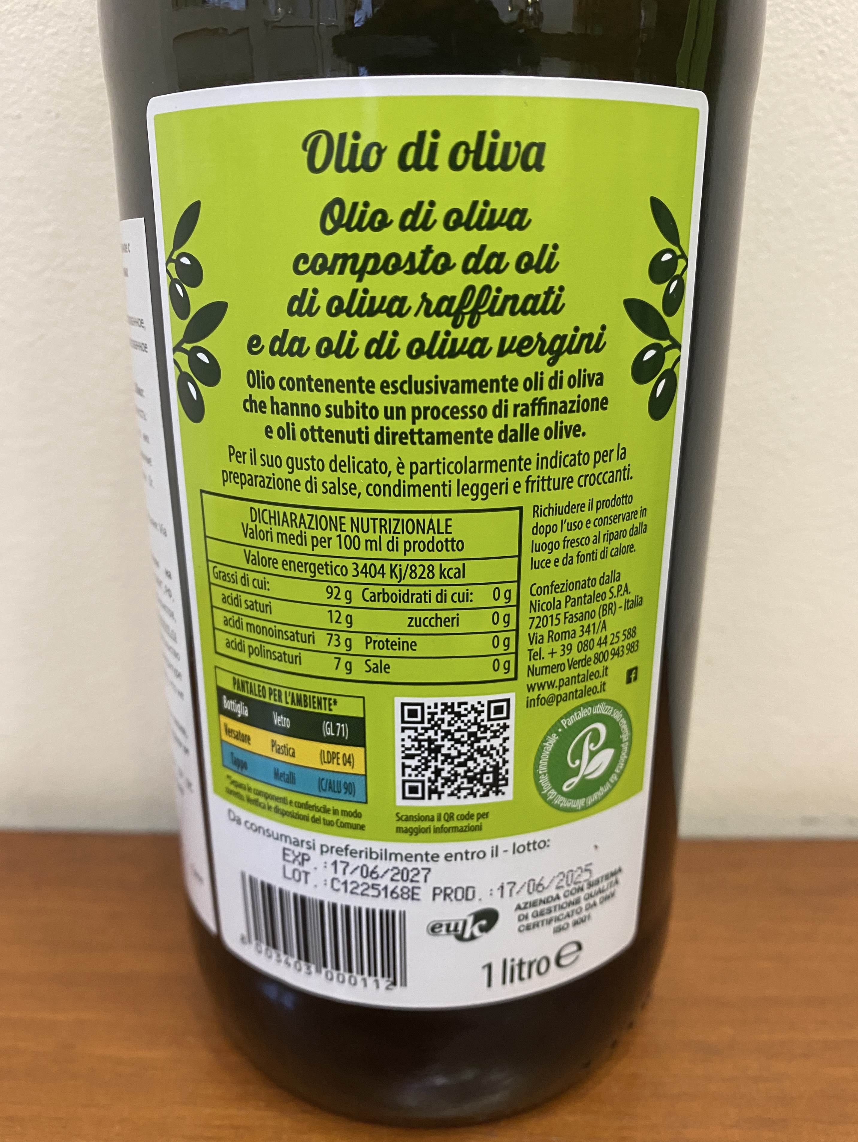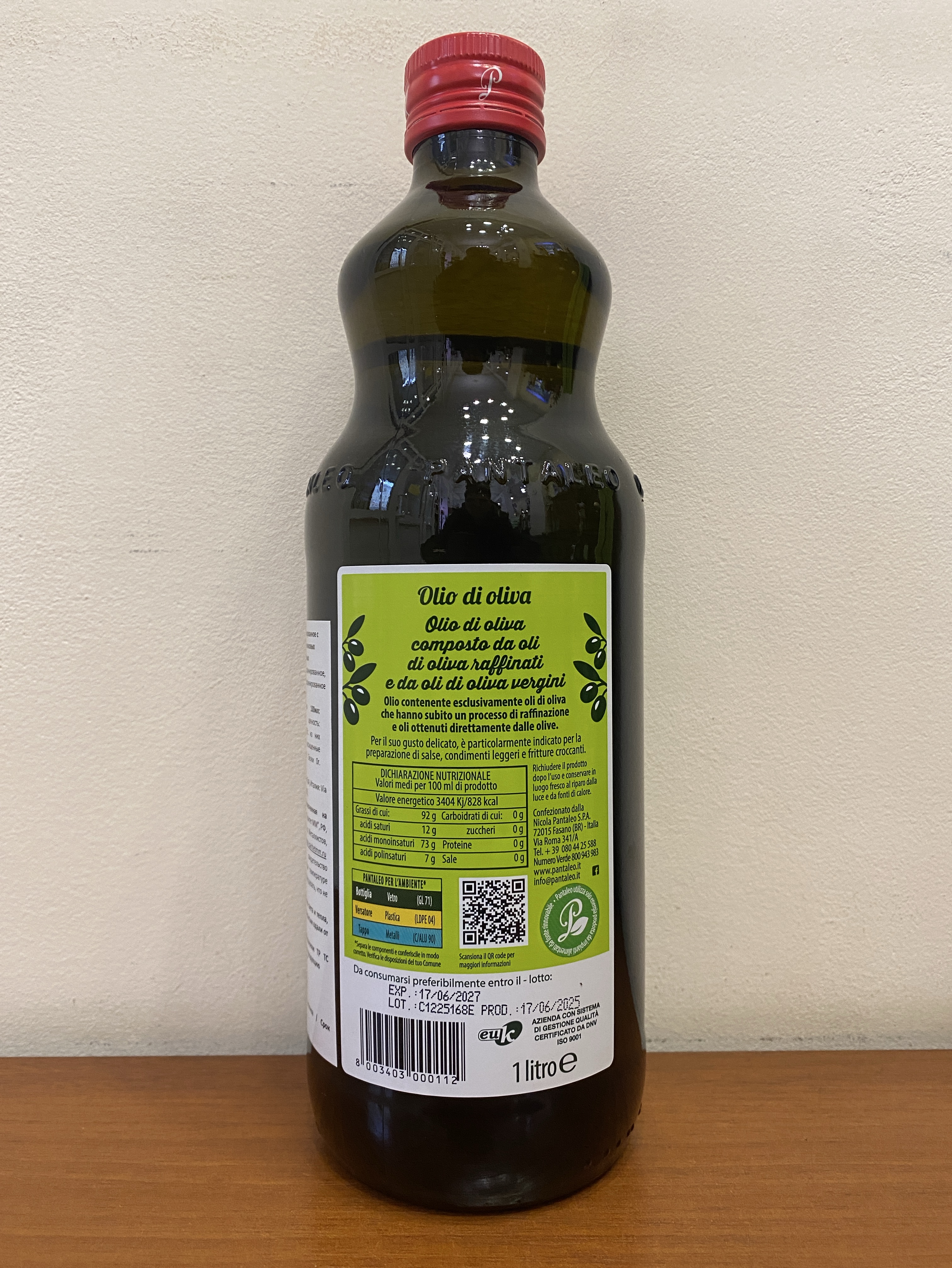 Оливковое масло PANTALEO PURE, стеклянная бутылка, 1л