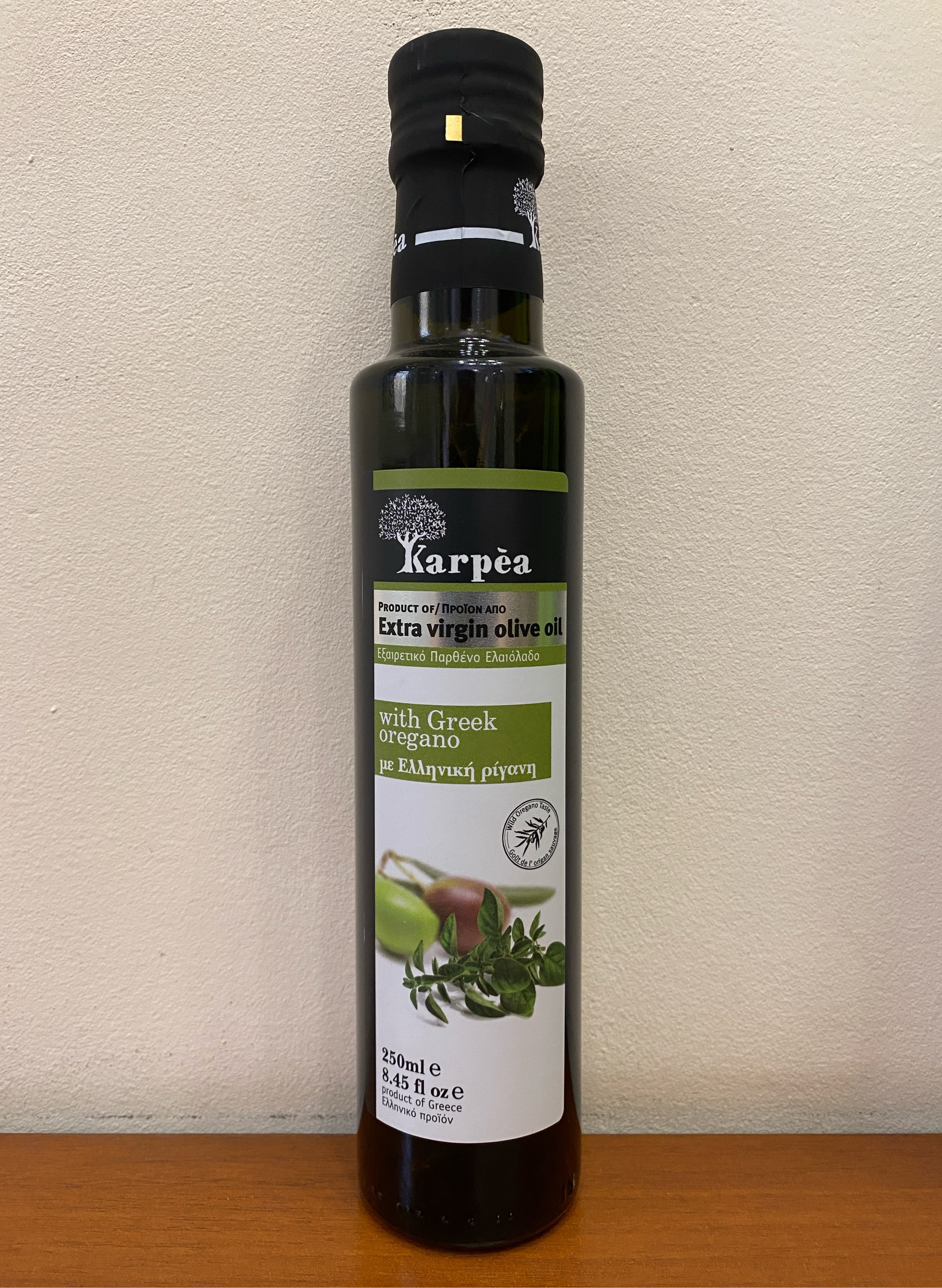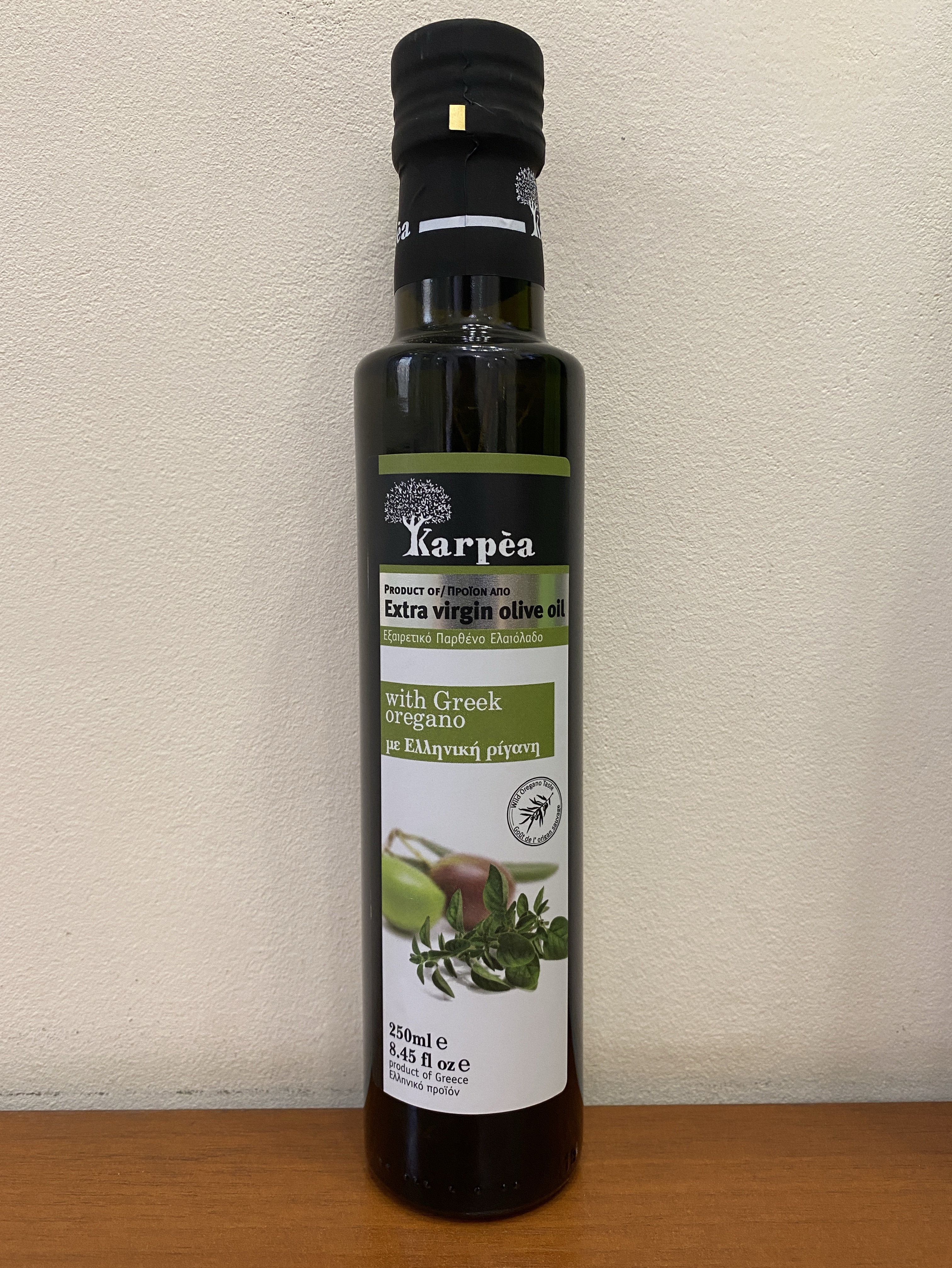 Оливковое масло нерафинированное, Karpea Clacssic Extra Virgin с орегано в стеклянной бутылке