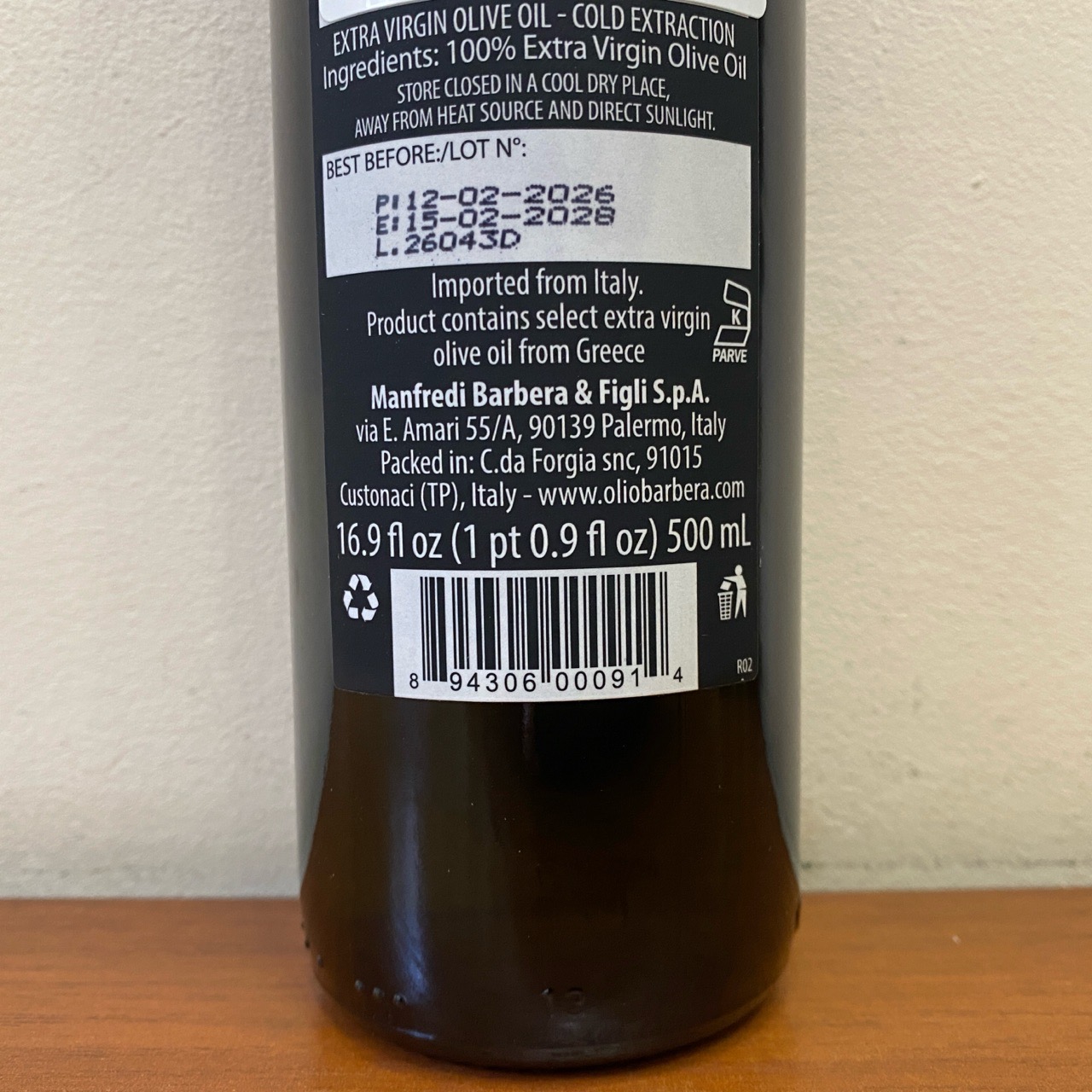 Оливковое масло нерафинированное BARBERA Extra Virgin моносортное