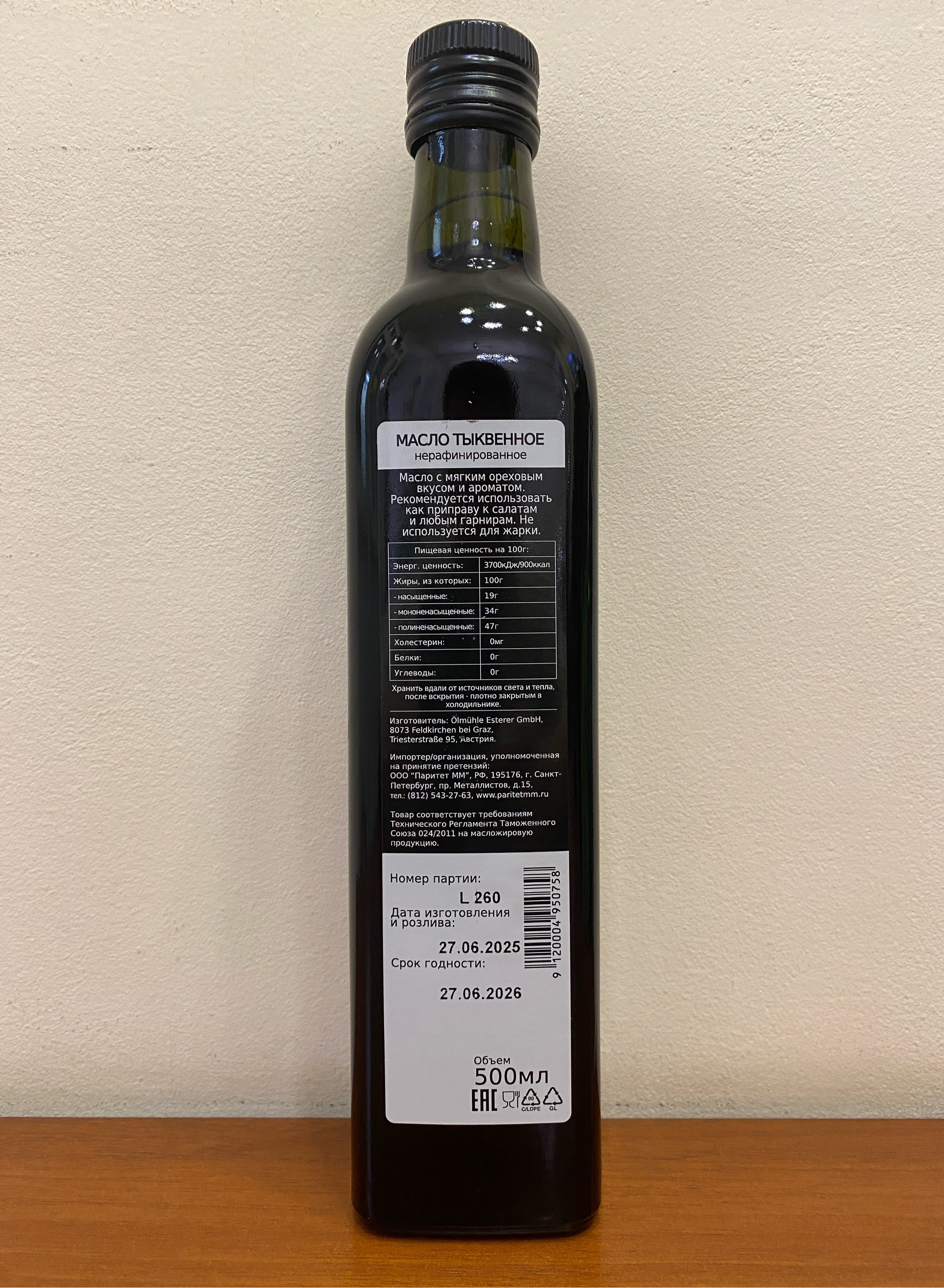 Масло произведено из тыквенных семечек отборного качества, отвечающим высоким требованиям производителя.