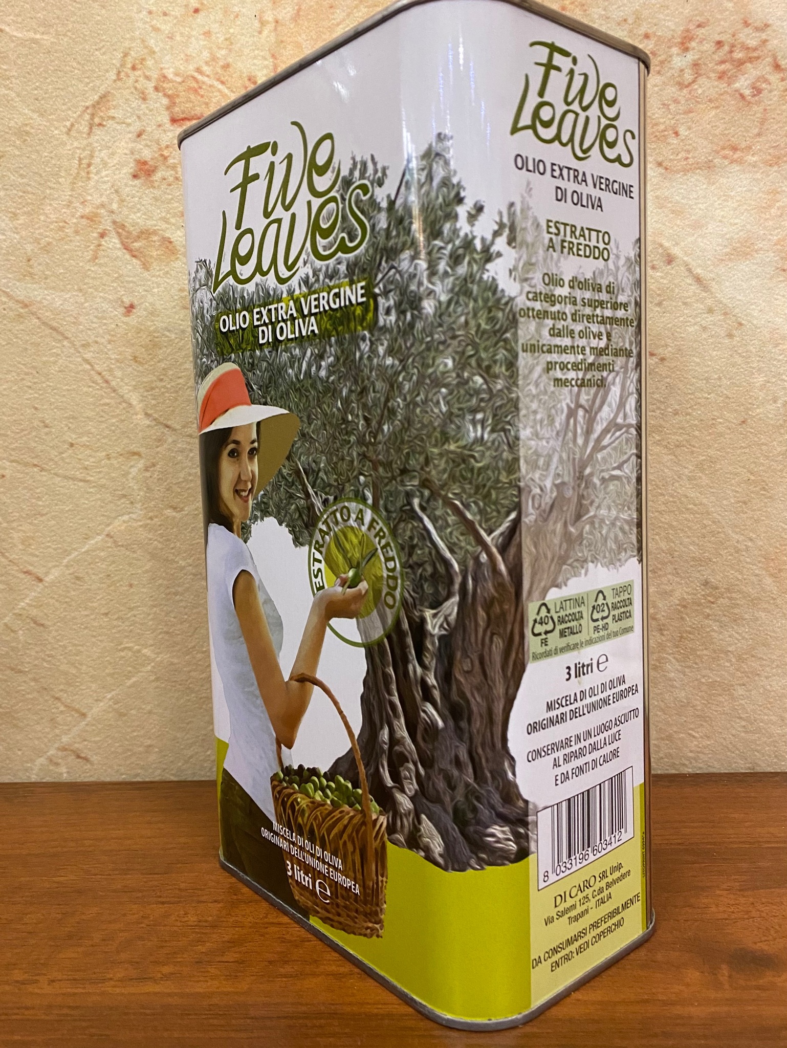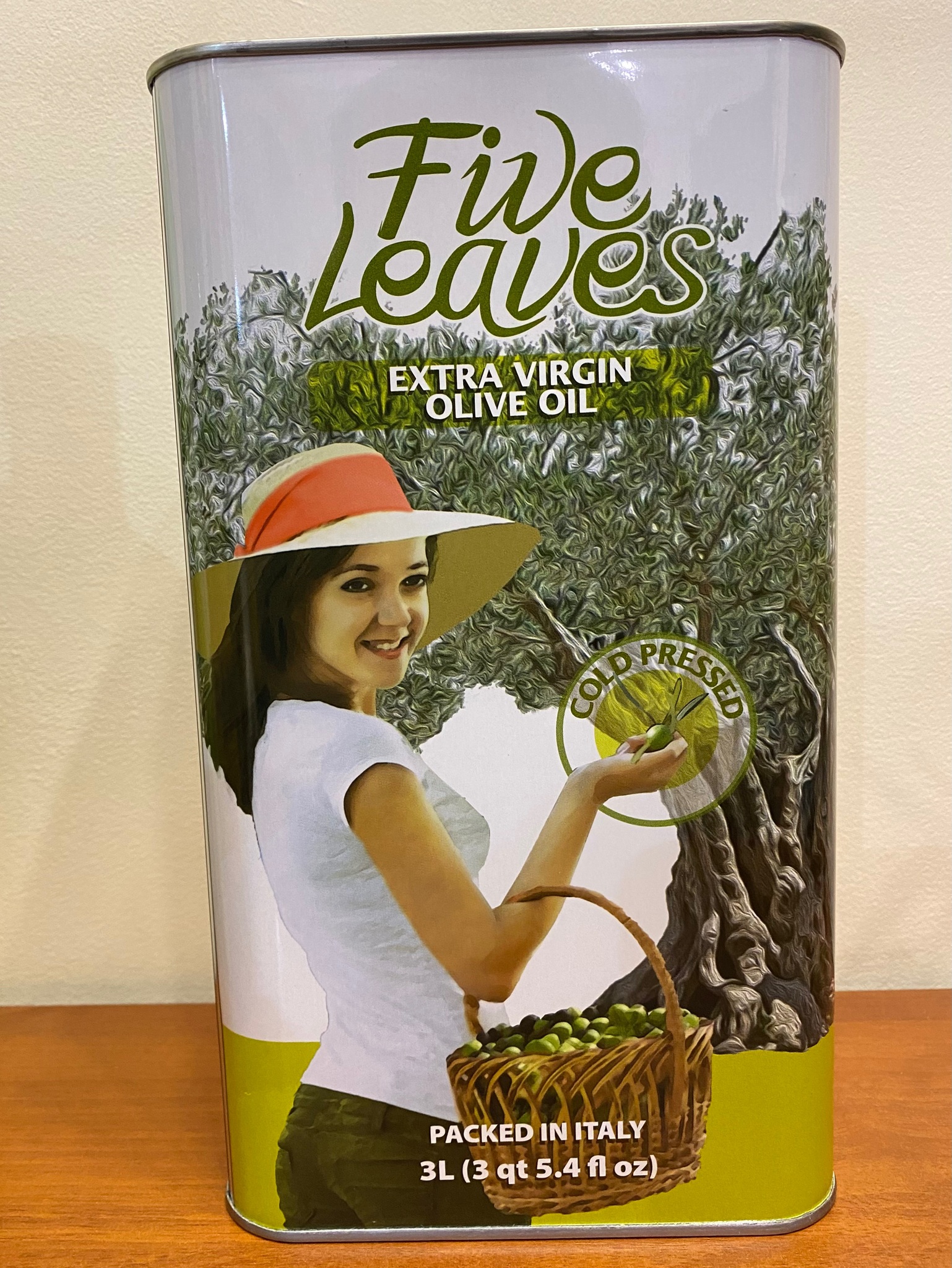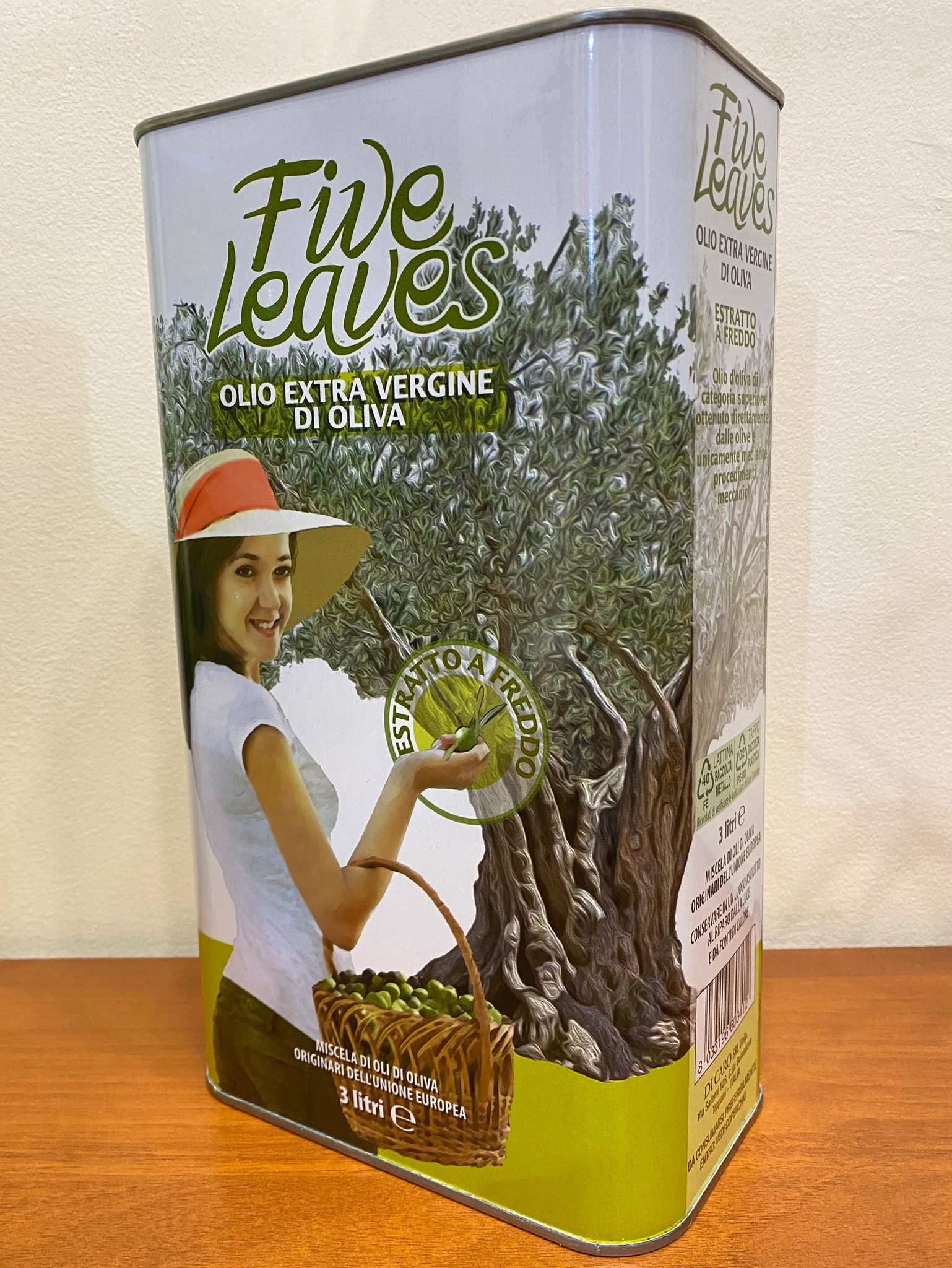 Оливковое масло нерафинированное Carmela di Caro Fives Leaves-Пять Листочков Extra Virgin в жестяной канистре 3 литра