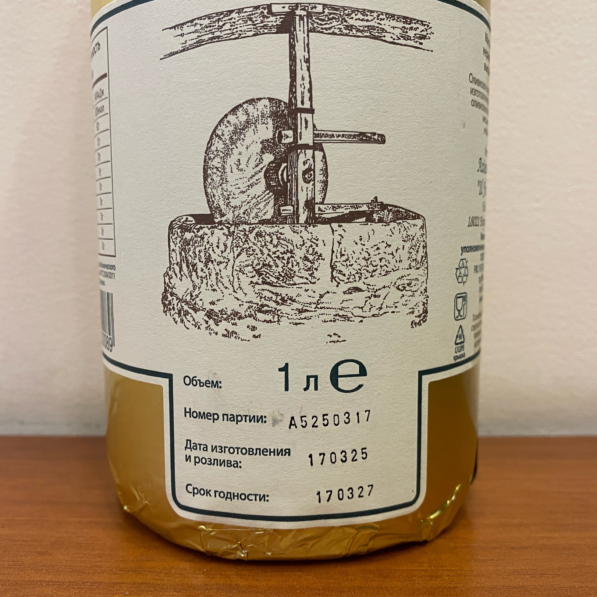 Это свежий оливковый сок, непосредственно из под пресса.